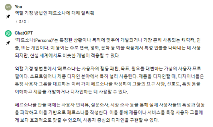 페르소나에 대한 전문가로 설정을하고서 질문을 하면 다음과 같다.